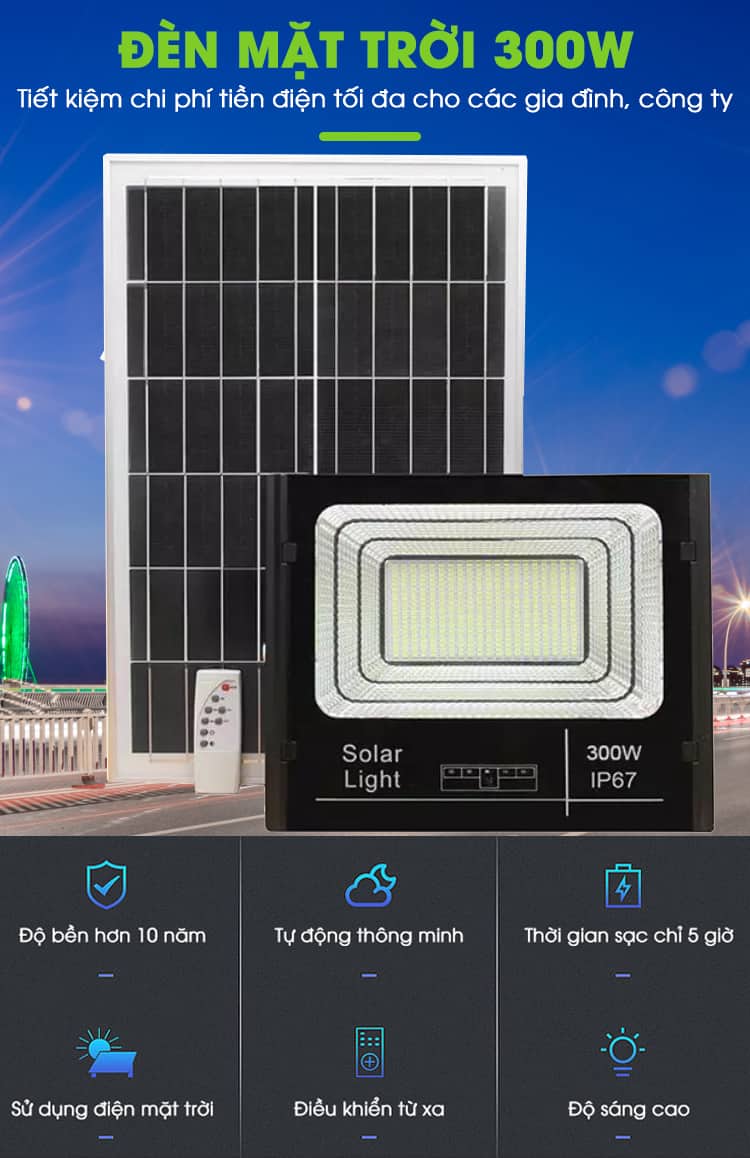 Những tính năng vượt trội của đèn năng lượng mặt trời Solar light 300W