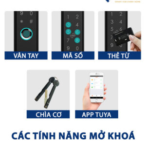 Phương thức mở vân tay, mã số, thẻ từ, chìa cơ